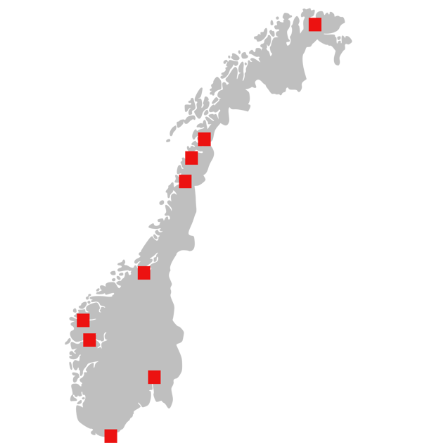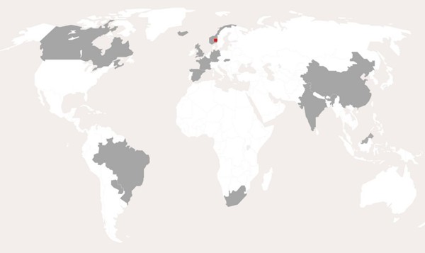 - Hovedkontor og ca. 50% av ansatte i Norge, med produksjon på fem kontinenter og kunder over hele verden